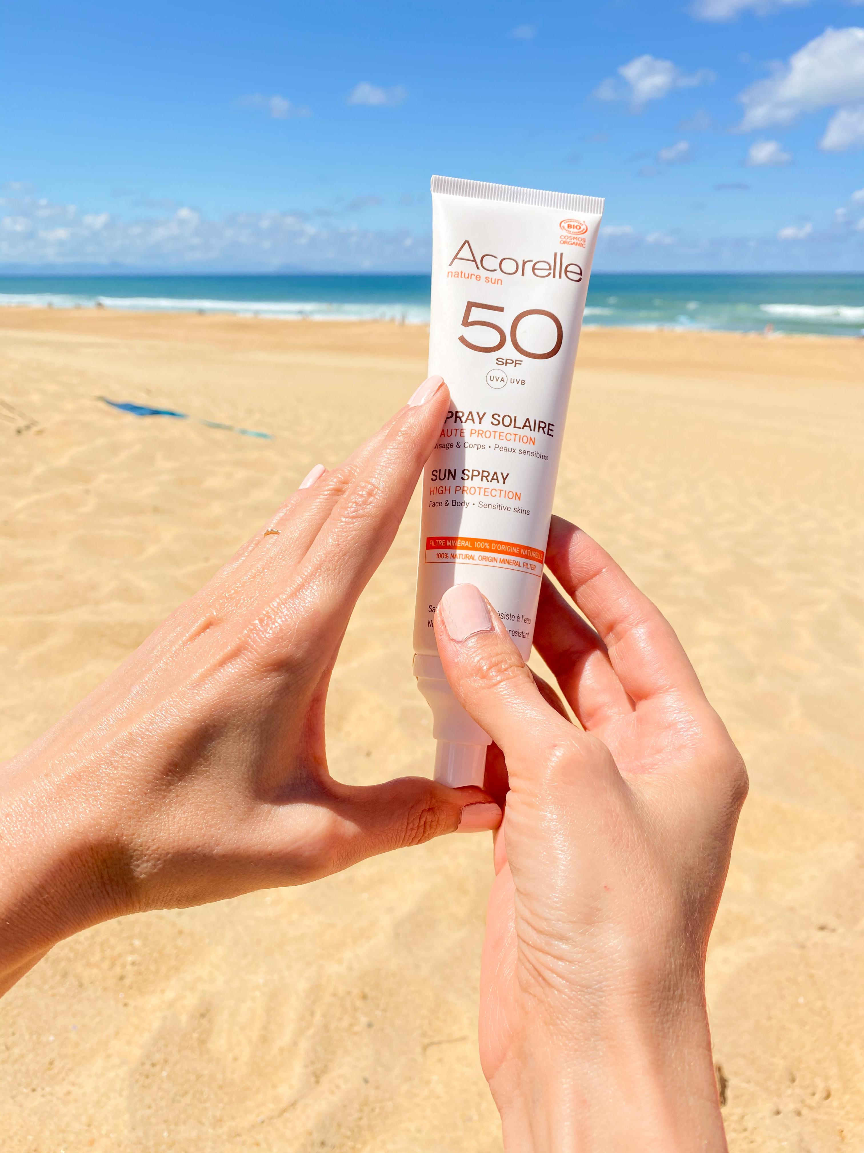 夏天即將到來,特別推薦Acorelle唯有機 全護植萃防曬乳 SPF 50含高比例天然礦物二氧化鈦可阻擋紫外線達370mm,有效防止肌膚曬黑、曬傷及老化,高達98%天然成分,其蘊含葵花油、橄欖果油、覆盆子籽油等多種植物果油,給予肌膚舒緩修護及滋潤,預防烈日造成肌膚乾燥,並添加專利AOA活性抗老配方,將有機蜂膠及有機花粉調和成天然抗氧化劑,延緩肌膚衰老及細紋產生,防曬同時也能給肌膚天然植萃精華保養!此外,按壓型噴頭可快速噴灑於全身,外出時使用起來相當方便。