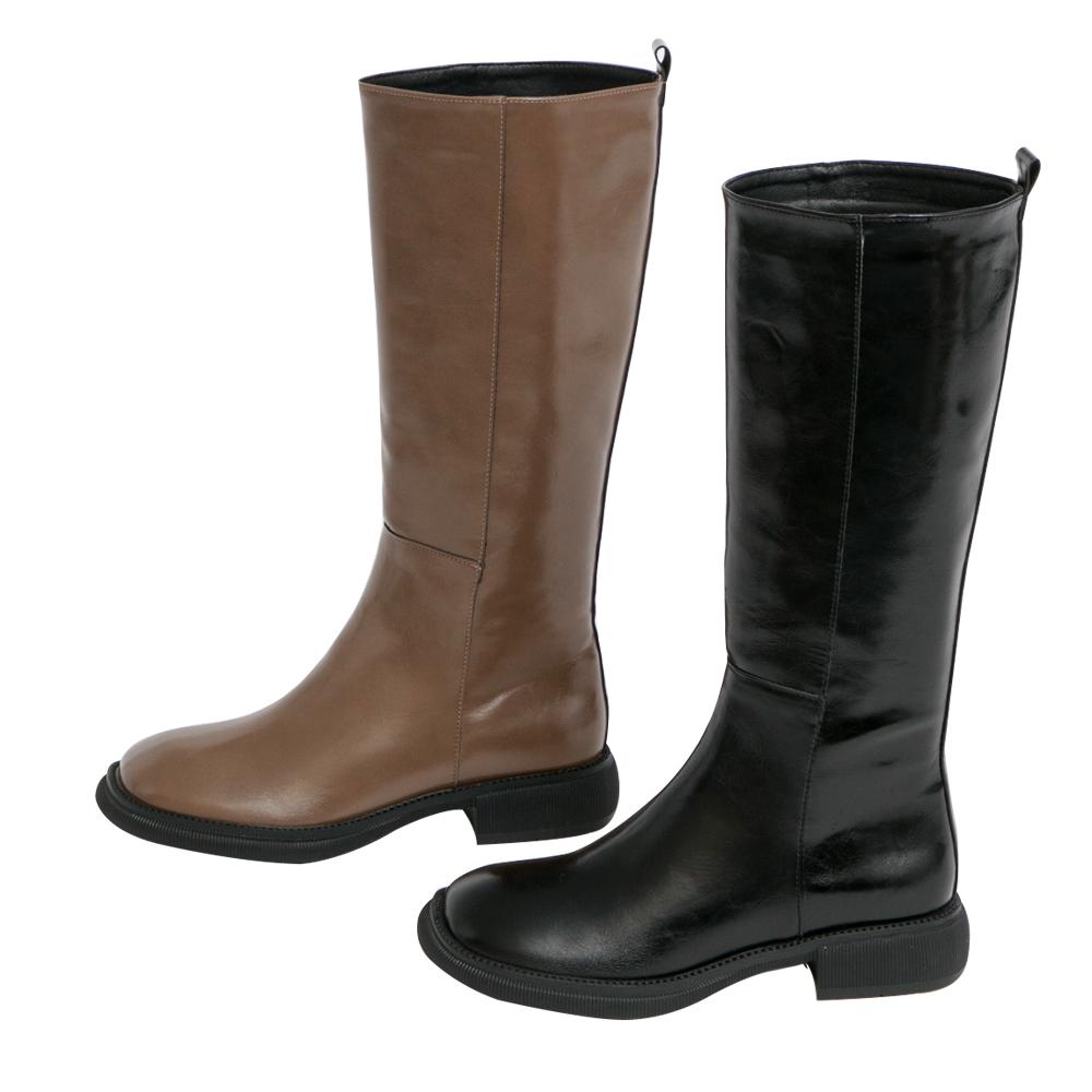 亮面復古皮革中跟長靴2色 售價NT.1380
