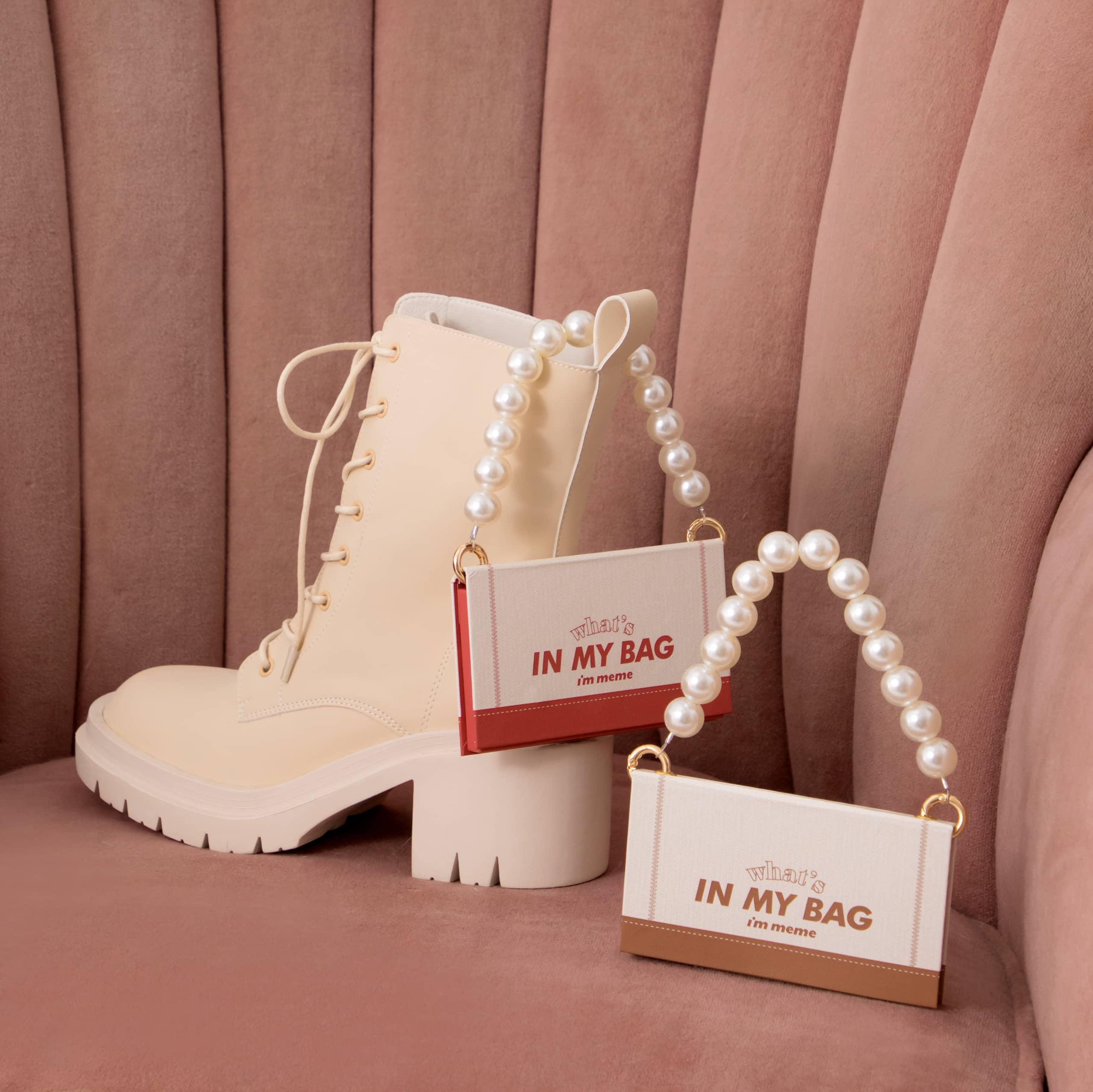 I’M MEME我愛超能彩妝小方包內裝絕美韓系空氣感「永生木玫瑰色系」彩妝,一盤八色包含眼影、腮紅、修容、提亮功能4 in 1,考量眼妝日常實用性和年末派對情境需求,推出01小棕包「永生楓木玫瑰」、02小花包「永生茶木玫瑰」兩個色調,兩種不同風格的妝容色調搭配上Grace Gift六款風格鞋履,包含今年必備的綁帶靴、厚底靴、韓系個性方頭等,直接從頭到腳的韓系妝扮,變化出多種約會、聚餐、派對都能駕馭的完勝裝扮!這次,在有著韓妞爭相用韓幣下架的強力口碑催化下,雙品牌預計於12月22日正式推出的韓妞「超能派對TOTAL LOOK」絕對會是你們今年相見恨晚的最強派對彩裝穿搭特企!