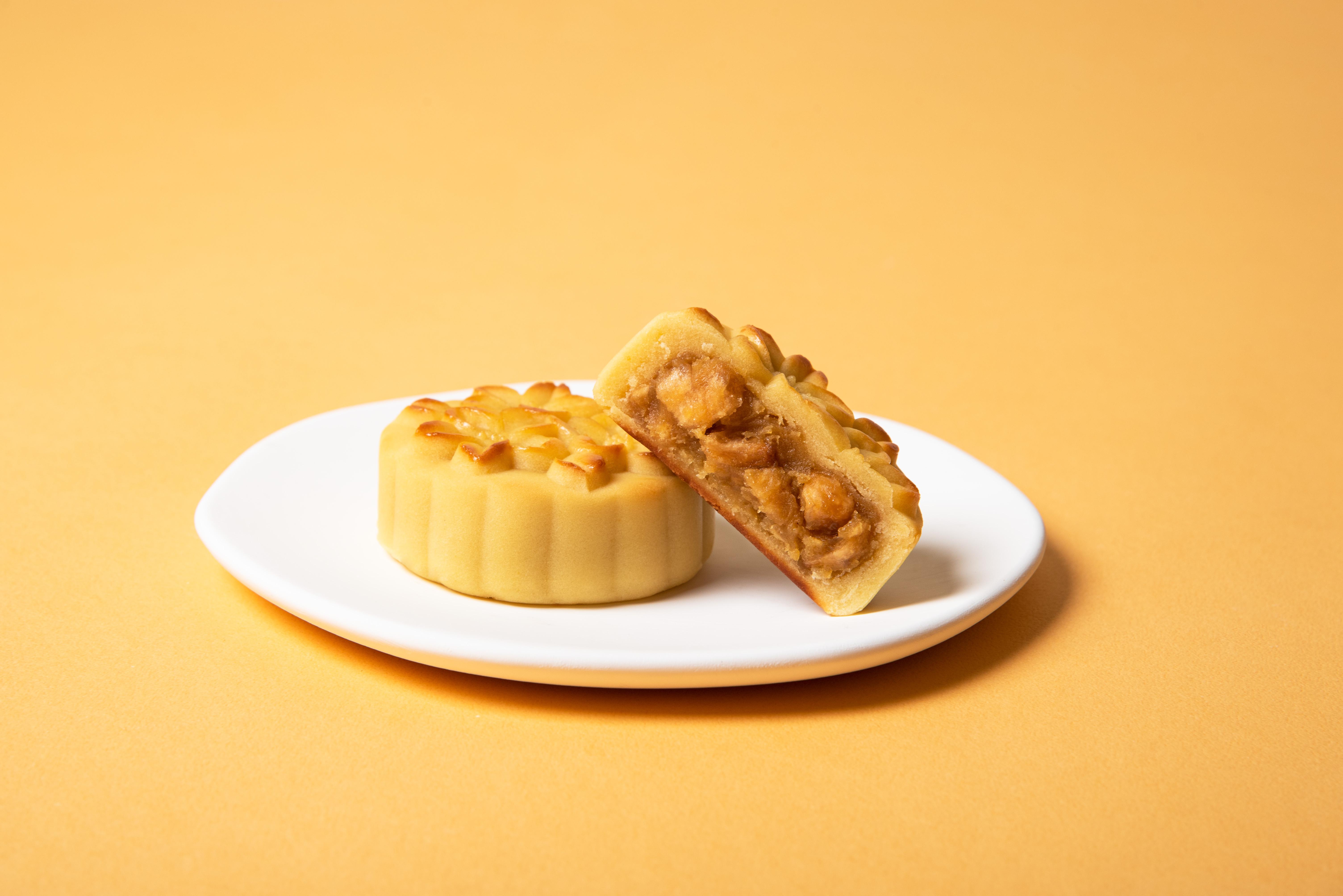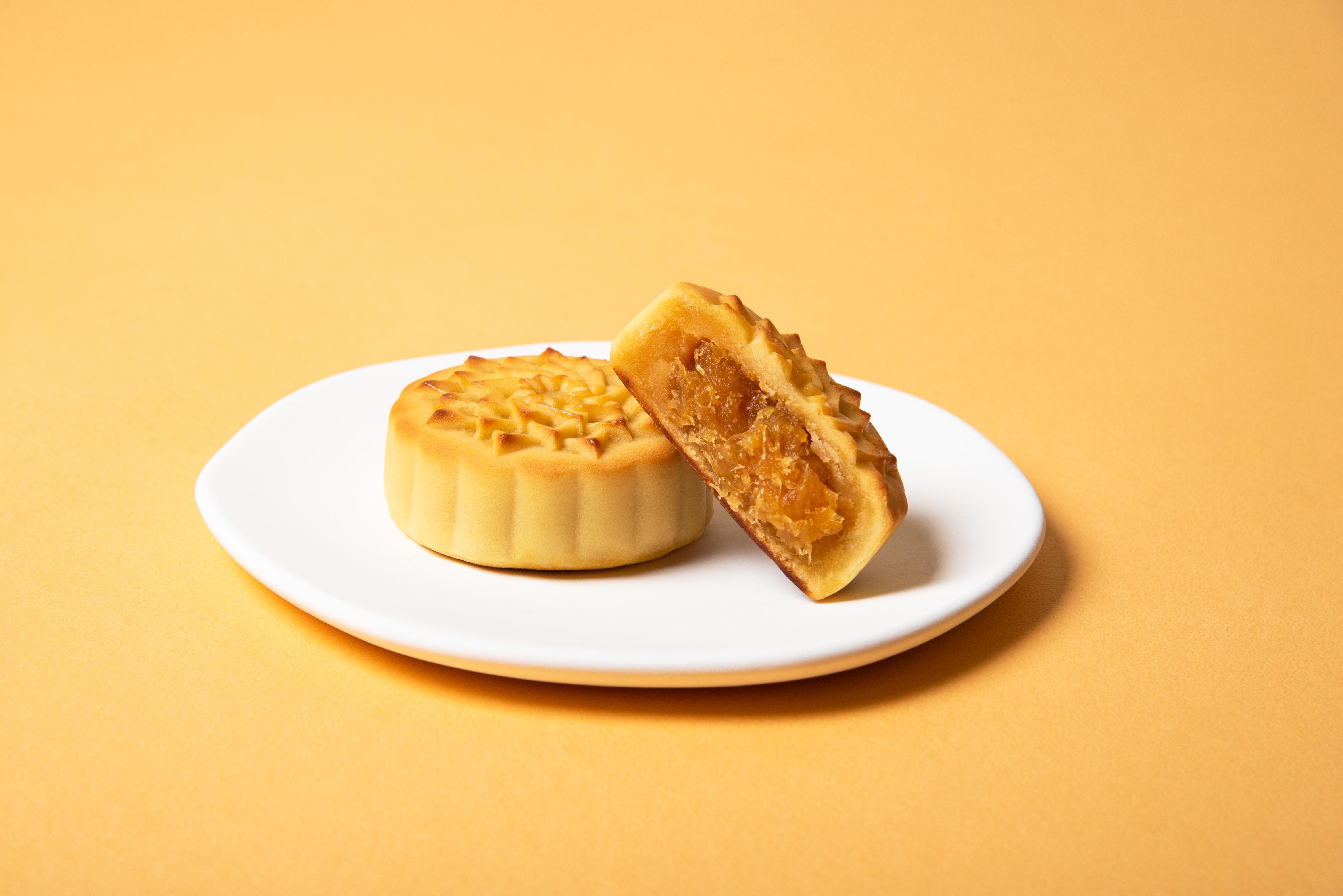 金黃燦爛、風味濃郁的鳳梨醬,封存了來自八卦山上的炙熱陽光!滑順細緻的奶黃,以一絲鹹香為台灣鳳梨天然的酸甜提味,呈現中秋記憶中,純粹的情感與思念。外型層次分明的鳳梨花紋,實現了風味與烤色兼具的烘焙工藝,象徵繁盛豐收,傳遞飽滿祝福。