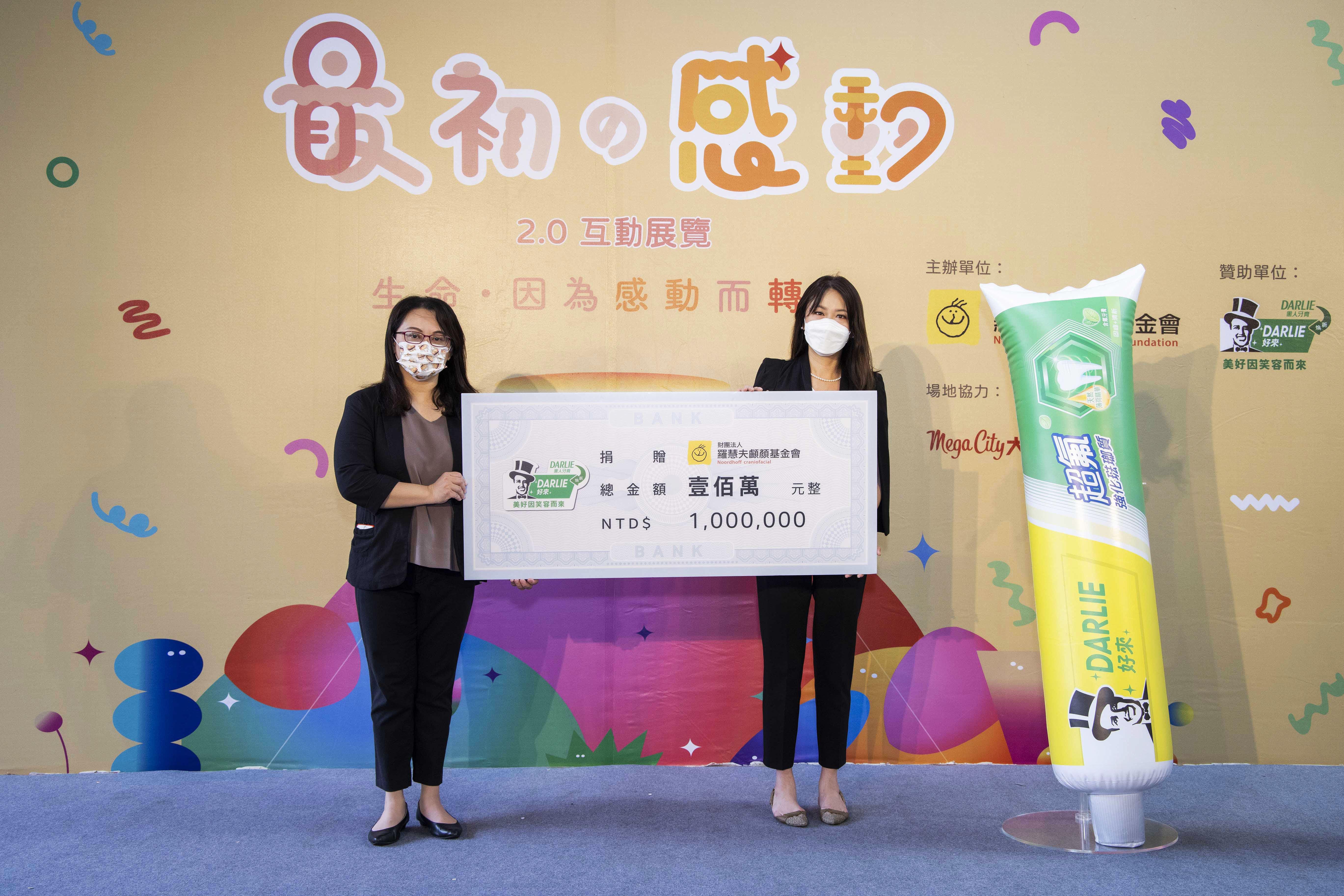 羅慧夫顱顏基金會執行長 陳依伶(左)、DARLIE好來品牌行銷總監 Natasha(右)捐贈儀式合照