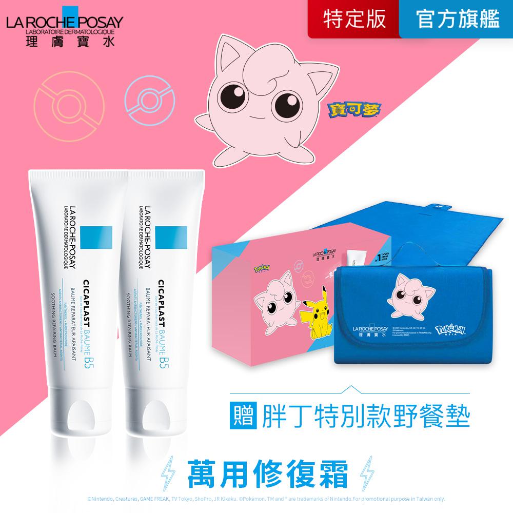 全台熱銷破十億,幾乎人手一條的神級B5萬用霜,今年攜手最萌巨星寶可夢,一起收服你的各式肌膚問題!此次推出超可愛的特別款禮盒,寶可夢粉必收藏!內含B5全面修復霜100ml *2,限時11天買就送限量獨家胖丁野餐墊,現在只要63折就可以通通帶回家!讓你享受愉快的野餐時光,同時可愛裝備羨煞眾人成為全場焦點!被譽為國民屁屁膏、神級萬用霜的「B5全面修復霜」添加高濃度5%維生素原B5,有助立即舒緩乾燥乾癢、泛紅脫屑等肌膚不適,改善皮膚暗沉乾裂,避免留下瑕疵,並搭配有效修復成分積雪草苷及保濕成分雪亞脂,加速修復速度,同時滋潤保濕肌膚,質地舒適迅速吸收不黏膩,成分溫和不刺激,嬰幼兒及全家大小皆可使用,是你修復肌膚的神隊友!