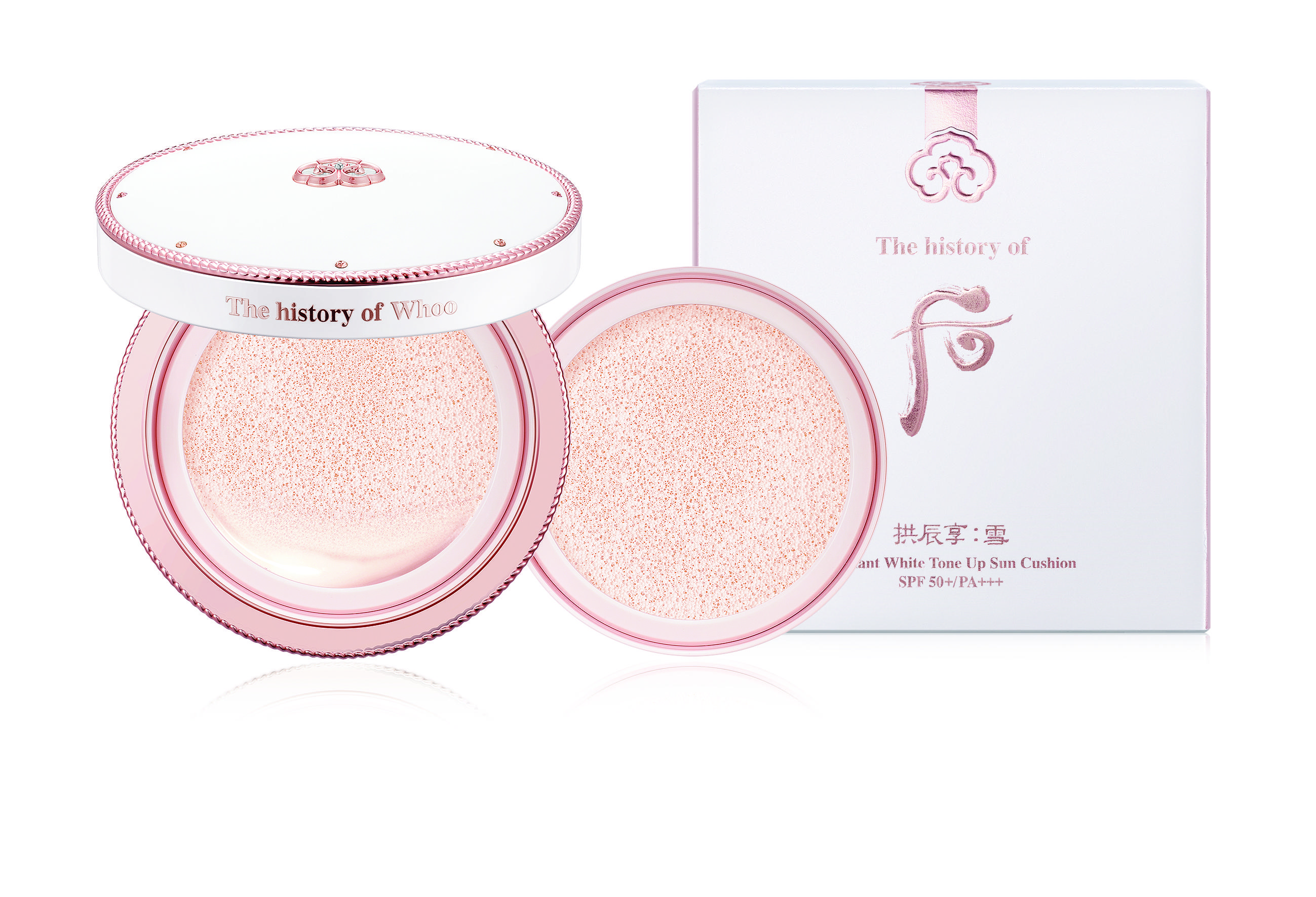 韓國頂級保養品牌 The history of Whoo 后,結合韓國宮廷歷史文化背景,以現代韓方科技演繹皇室御用的奢華美顏聖品,將保養秘帖注入底妝成分,致力締造優雅粉嫩的絕美容顏。2022 年,拱辰享 雪系列全新推出「拱辰享雪白提亮防曬水氣墊 SPF50+/PA+++」,以極低溫炮製甘菊水,搭配七香八白散及雪甘散等頂級韓方成分,提煉出宮廷美顏秘方,上妝同時為肌膚達成保養、淨白、保濕、防曬等多重功效,柔滑絲綢般質地輕拍於肌膚,若有似無的輕薄貼合感,賦予自然勻亮妝感,輕鬆打造粉嫩桃花肌!