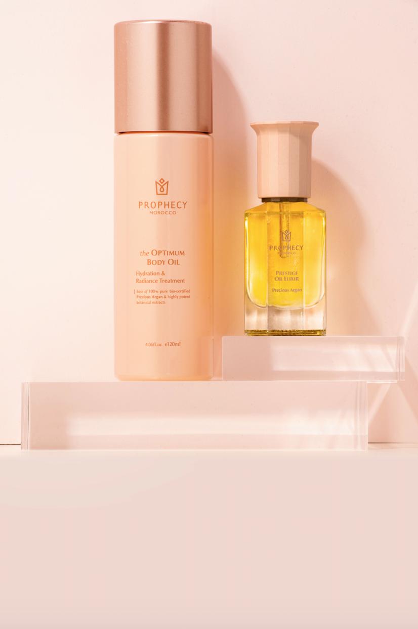 想當自己的完美女神,更不能忽略身體的肌膚保養,Prophecy Morocco鉑翡斯美體極萃油以45%摩洛哥堅果賦活金萃油為基底,添加多種純植物性美膚植萃,不分膚質、年齡、季節,輕鬆打造透白、細緻、彈潤的自信美肌。美體極萃油 賦活修護中添加專利水和修護因子、積雪草萃取液和珍稀龍膽葉萃取,集中修護、撫紋緊實、長效保濕一滴三效,非常適合熟齡或想使肌膚更緊緻柔嫩的愛美女性使用。美體極萃油 保濕透白中含有珍稀海百合萃取,能有效擊退暗沉,另添加歐洲李和玫瑰茄花萃取物加強保濕鎮定,讓肌膚散發自然亮白風采,適合輕齡肌和乾敏肌使用。