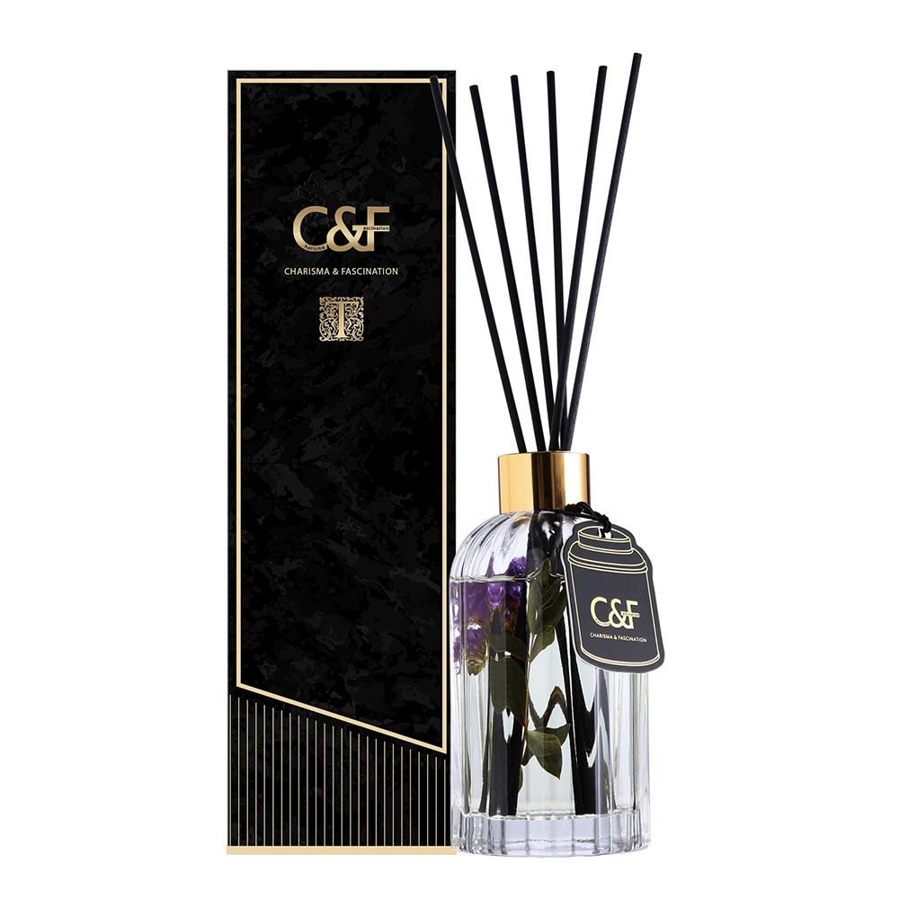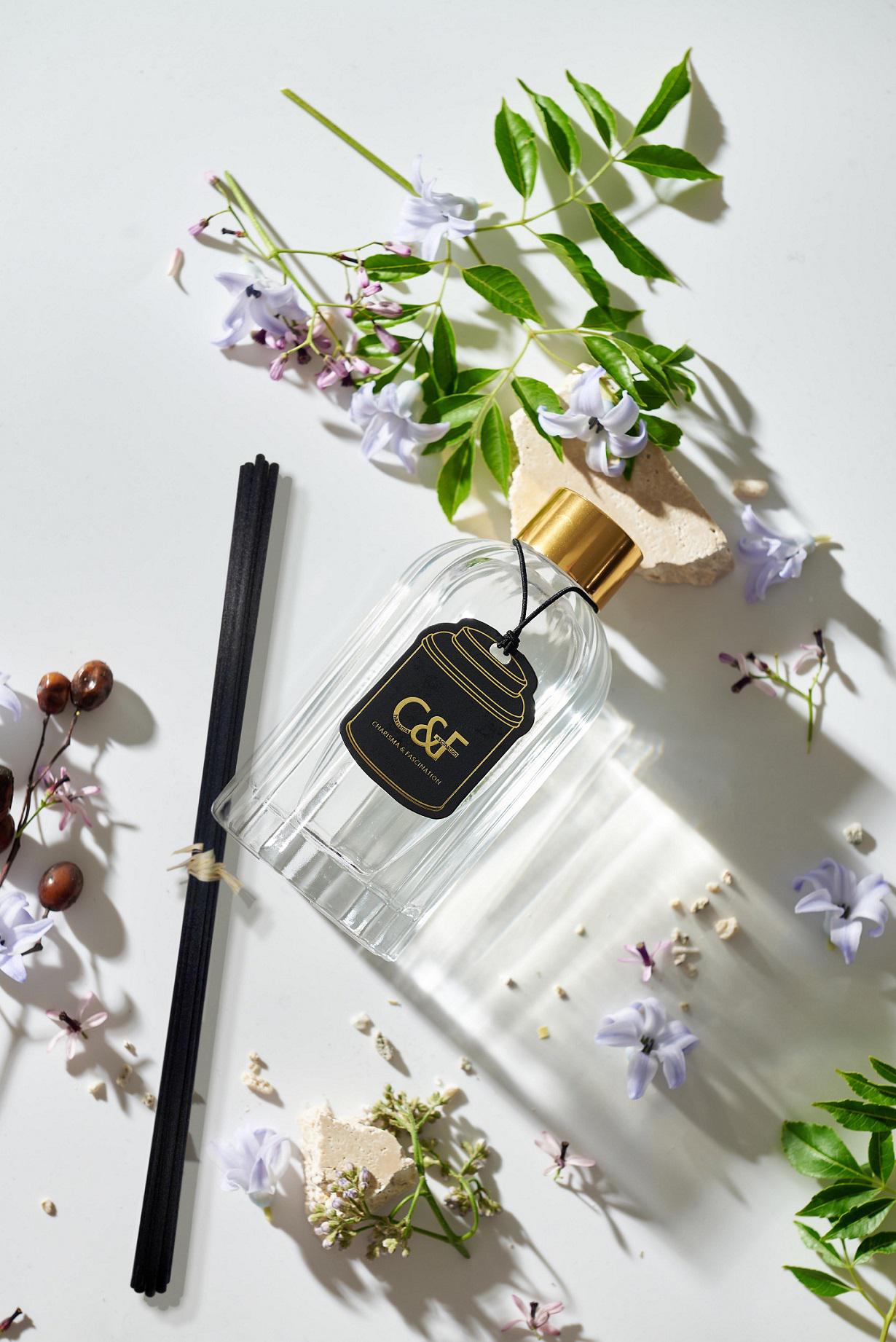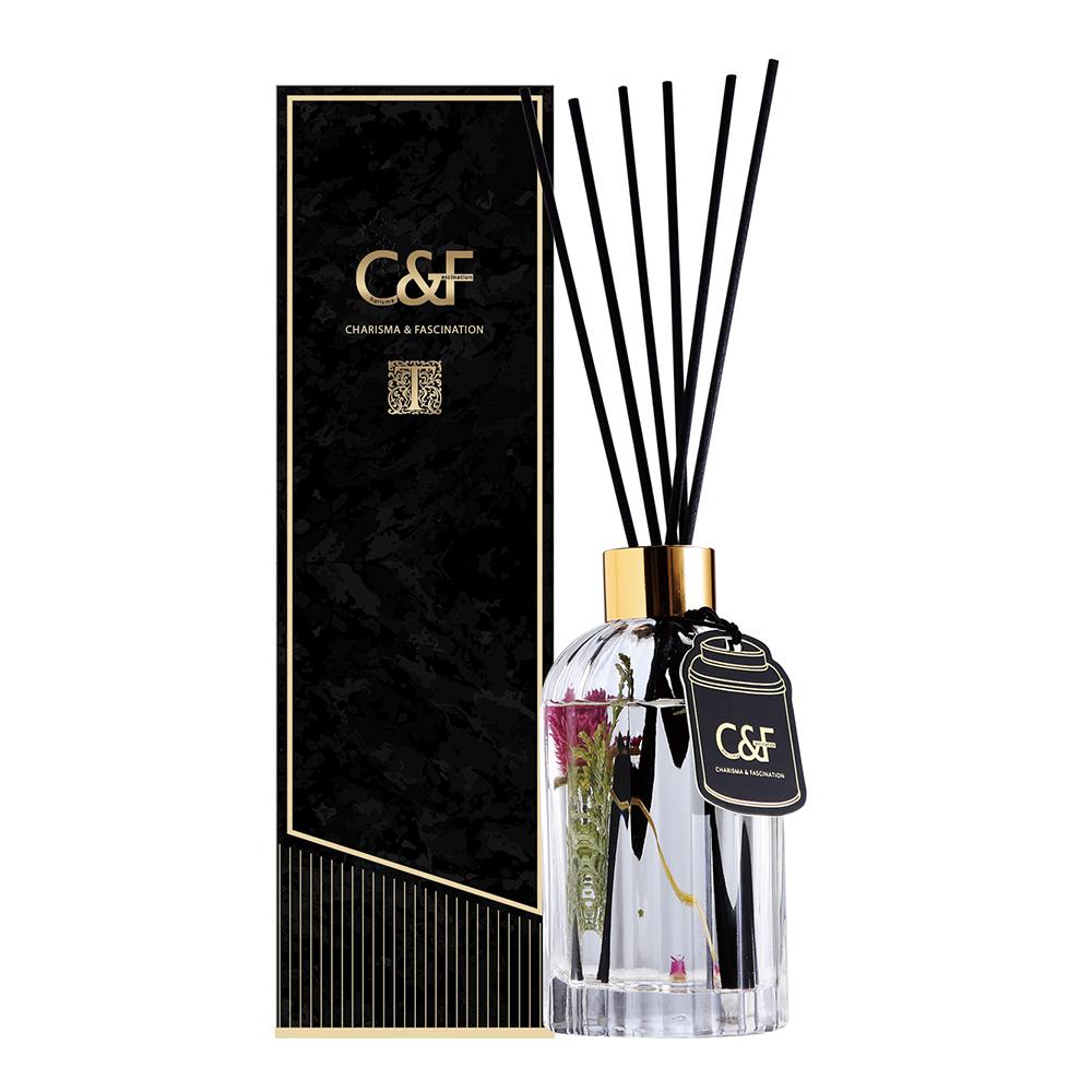 茶的氣味受品種、採摘、發酵等重重工法影響,故而變化多端,呈現萬種風味,用心細品方得其趣,就如香氛一樣,透過層層手藝調製,細心搭出多樣配方,用香味書寫不同的故事和各異的感受,讓品香如同品茶一樣都是莊嚴神聖的過程,從前、中、後調的變化中,體會生活情調與心靈滿足。這次「茶鑲系精油擴香」在瓶身方面選用精緻工藝鑲金鳥籠玻璃設計,奢華十足,並加入浪漫的天然乾燥花草,在香氣飄散中搖曳,給予香氛更文雅的質感。側邊垂墜的燙金吊飾如同女子優雅的飾品,像是妝點在白皙玉頸上的項鍊或絲巾,展現出獨一無二的奢華風格。每瓶同時附贈3款精巧茶罐型空間香氛卡,一次滿足全系列的香味體驗,也可當作書卡或放入包包抽屜,隨處擁有香氣。從視覺的華麗到嗅覺的舒適,成就美好生活的儀式感。在細膩精緻的韻味之外,C&F擴香採用歐洲高濃度精油,成分皆是以天然的精油單體成分與植物油提煉而成,無添加定香劑、醇醚混合物等化工溶劑,獲得SGS、IFRA國際認證無毒安心。