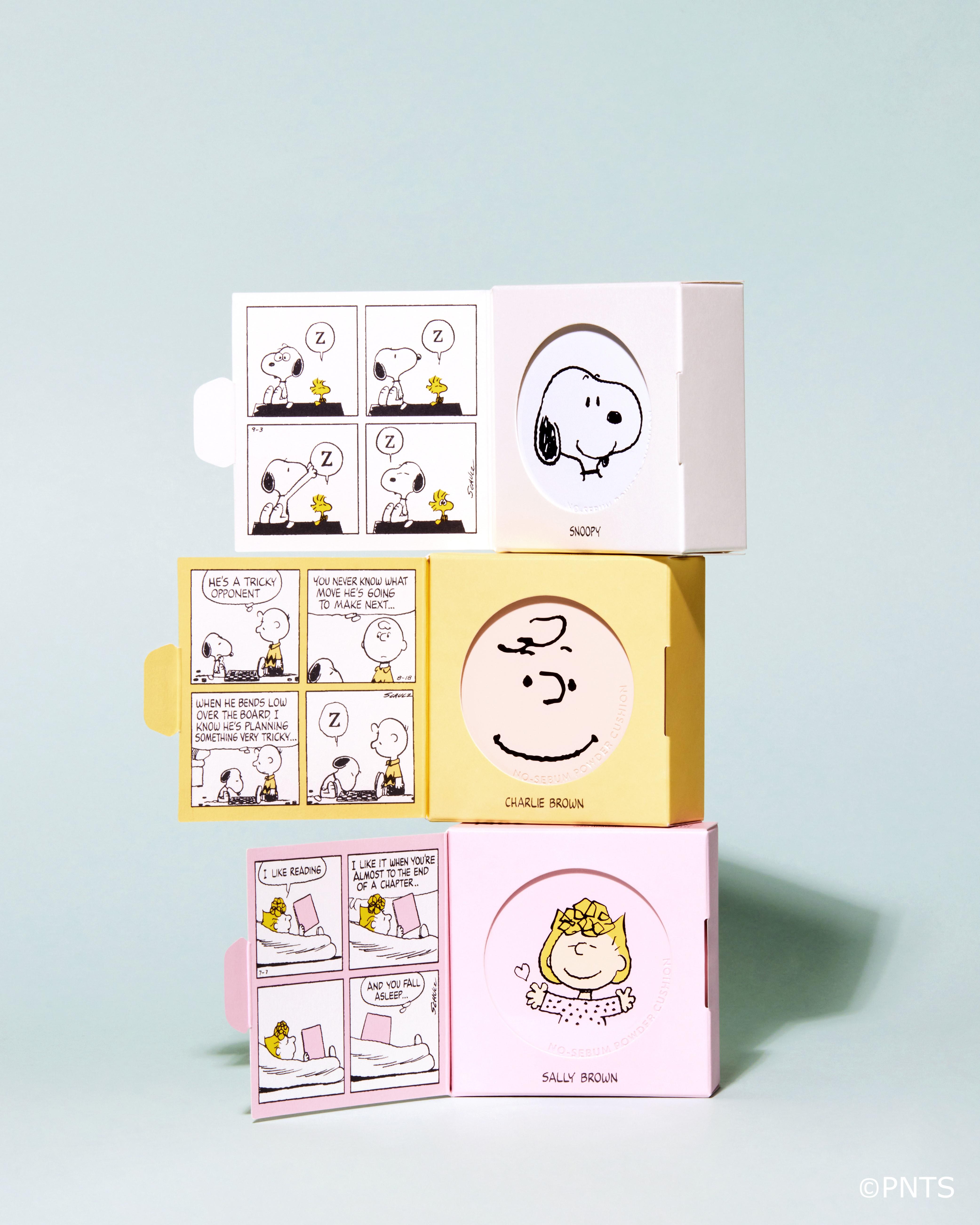 2022史努比限量版共有3種色號款式,不僅粉撲也有心臟爆擊的可愛細節設計,甚至連包裝盒都附上療癒的四格漫畫,讓你從開箱時就能和史努比漫畫角色們一起度過幸福的時刻!