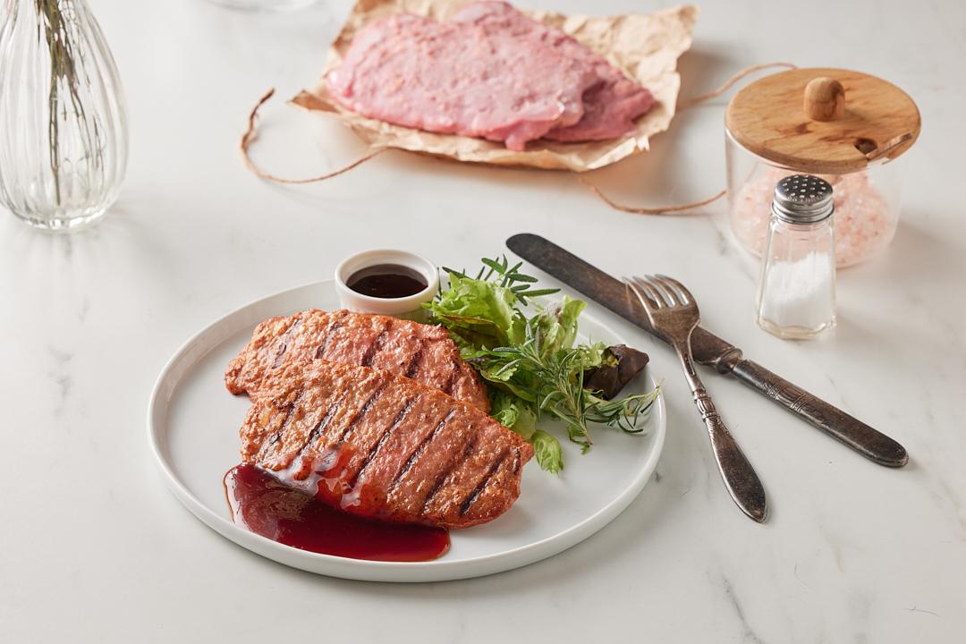 以台式排骨肉為靈感,採用獨家肌原絲拉絲技術製作,不僅看得到植物肉的蛋白紋路,加熱也更方便!零膽固醇配方搭配濃郁的日式照燒醬,一口咬下飽含甜美的醬汁鮮甜與彈性的肉品咬感,零膽固醇且低調味,無論做排餐或漢堡都合適,也能發揮創意自行料理!