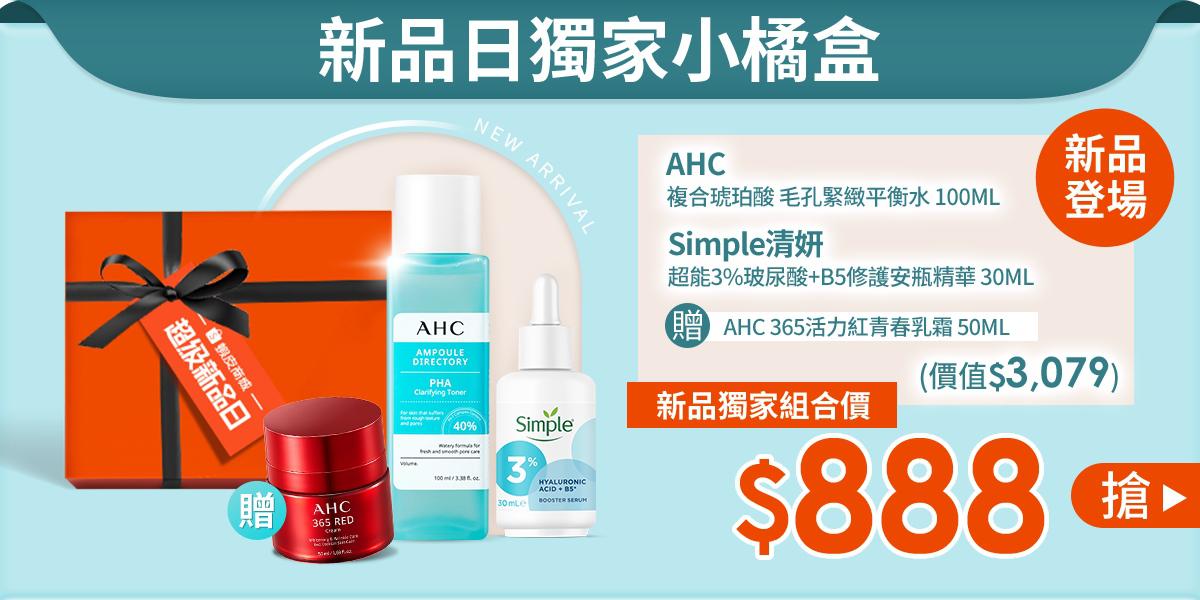 配合AHC琥珀酸系列新品上市,5/13-5/15 AHC超級新品日,購買AHC滿1,299享9折,全館滿2,000再折200(不累折)。新品組合超優惠,詳情可參閱AHC超級新品日活動頁面。
