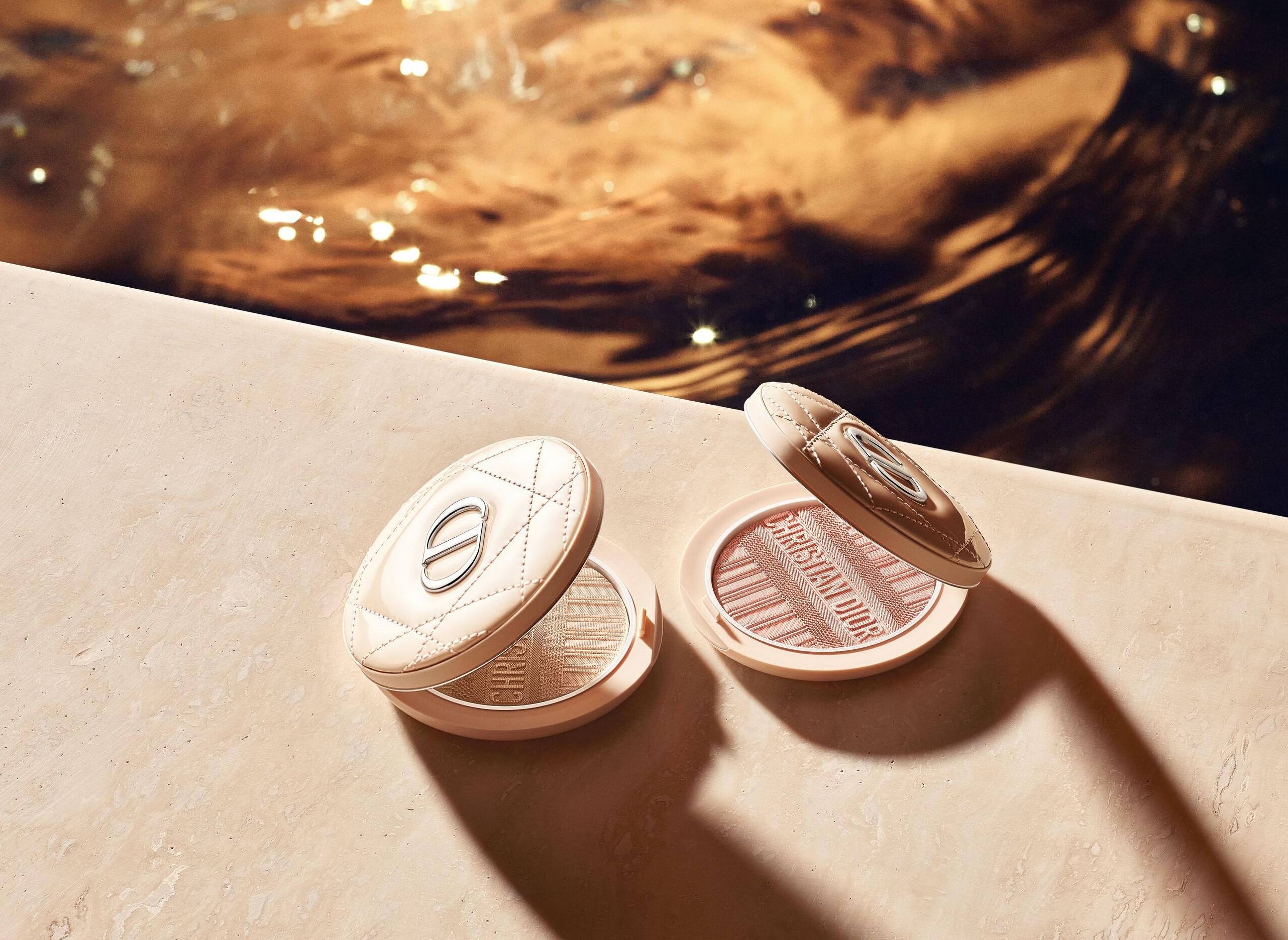 迪奧本季翻玩經典 BAYADÈRE 法式條紋圖騰,以夕陽餘暉灑落為靈感,將金色光芒盡收限量《迪奧超完美持久亮采餅 夏妝限量版》中,打造出 2 款閃耀著燦爛光芒的色選:擁有金色光澤的「#001 珠光米」、閃耀粉色偏光的「#002 朝陽粉」,輕刷立顯好氣色,綻放閃耀細緻、令人渴望的光澤肌,全天候持妝,如第二層肌膚般輕薄舒適。添加純淨三色堇精萃,賦予肌膚長效保濕與持久舒適的妝效。富蘊高濃的天然光燦礦物粒子,可提亮膚色,使肌膚在任何角度下,都能煥發透亮光采,展現明亮細緻的妝容。