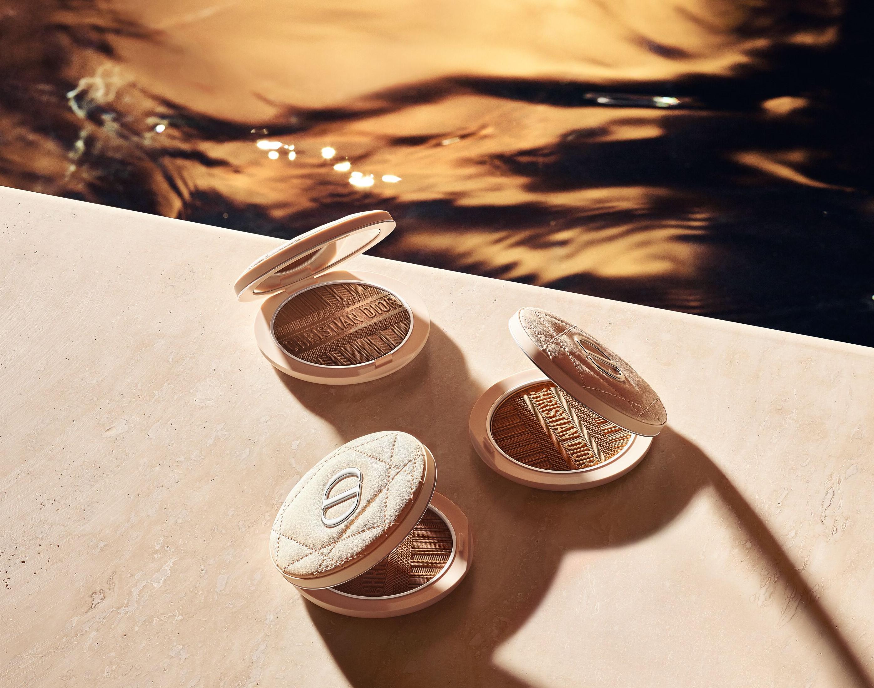 同步推出,「DIOR 線上旗艦店」獨家販售的《迪奧超完美持久修容餅 夏妝限量版》也飾有相同圖騰,閃耀著陽光親吻過的健康光澤,完美收入優雅淡米色漆皮修容餅中,宛如度假時陽光輕撫臉龐留下的自然光采,並推出 2 款色選:適合健康膚色的「#004 古銅棕」、適合篇古銅膚色的「# 005 燦陽棕」。蘊含 95%礦物粒子 1,細緻粉質,輕掃修飾肌膚輪廓、與肌膚完美貼合。添加純淨三色堇精萃,賦予肌膚長效保濕與持久舒適的妝效,為肌膚帶來夏日陽光親吻般的健康光澤與性感的古銅光暈。