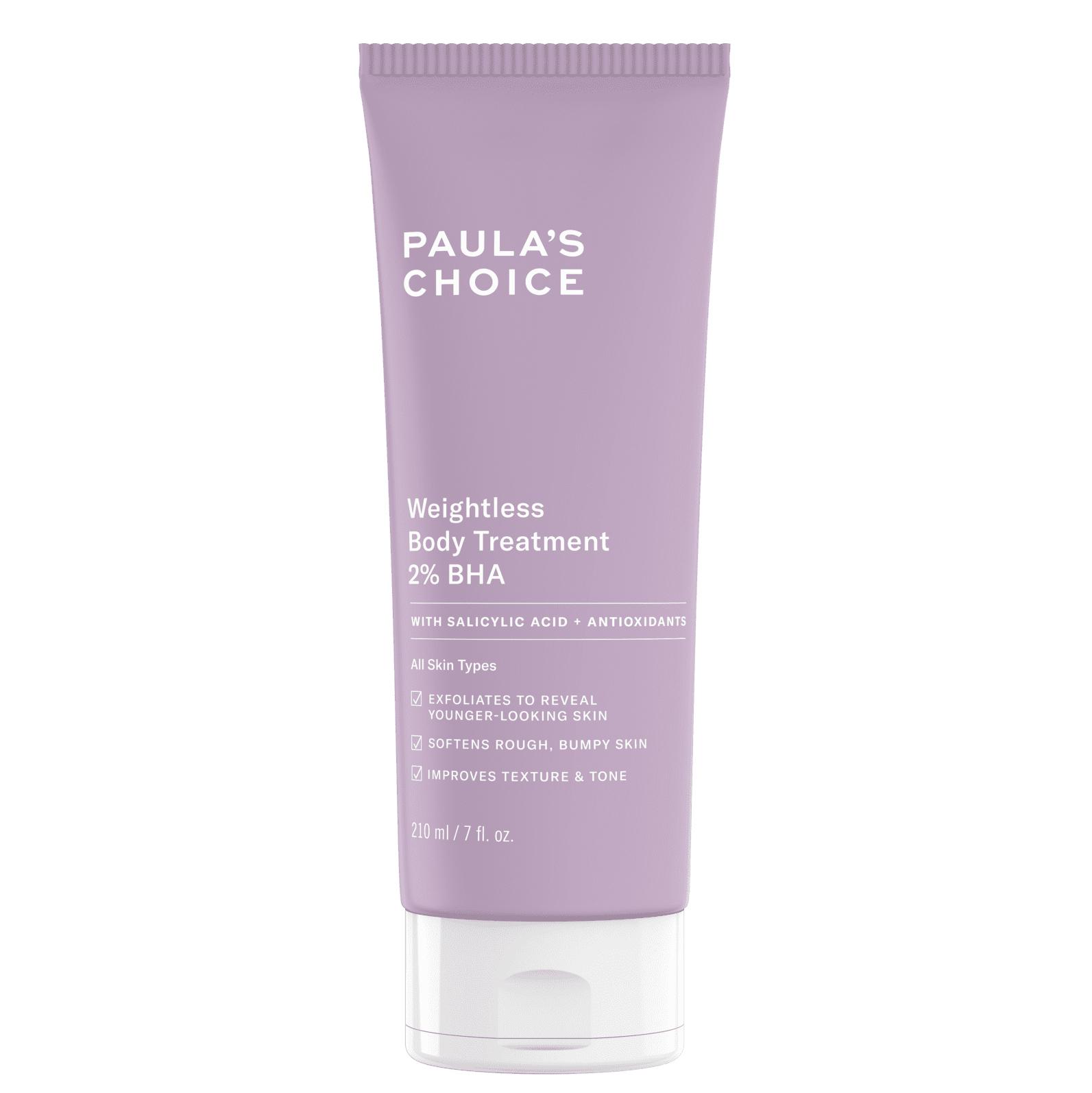 【4】寶拉珍選 2%水楊酸身體乳:富含 2%水楊酸,以溫和安全 pH3.5-4 有效去除角質全面淨化毛孔、代謝老廢角質並改善毛孔顆粒、粉刺、青春痘同時去除粗糙老皮。加入抗氧化維他命 E 與綠茶萃取來提升肌膚防禦力,預防老化膚觸緊緻有彈性;輔以舒緩作用洋甘菊、柳蘭、香草萃取以安撫鎮定痘痘不適;搭配保濕尿囊素,溫和保濕潤膚,促進肌膚修復預防留下暗沉痕跡。