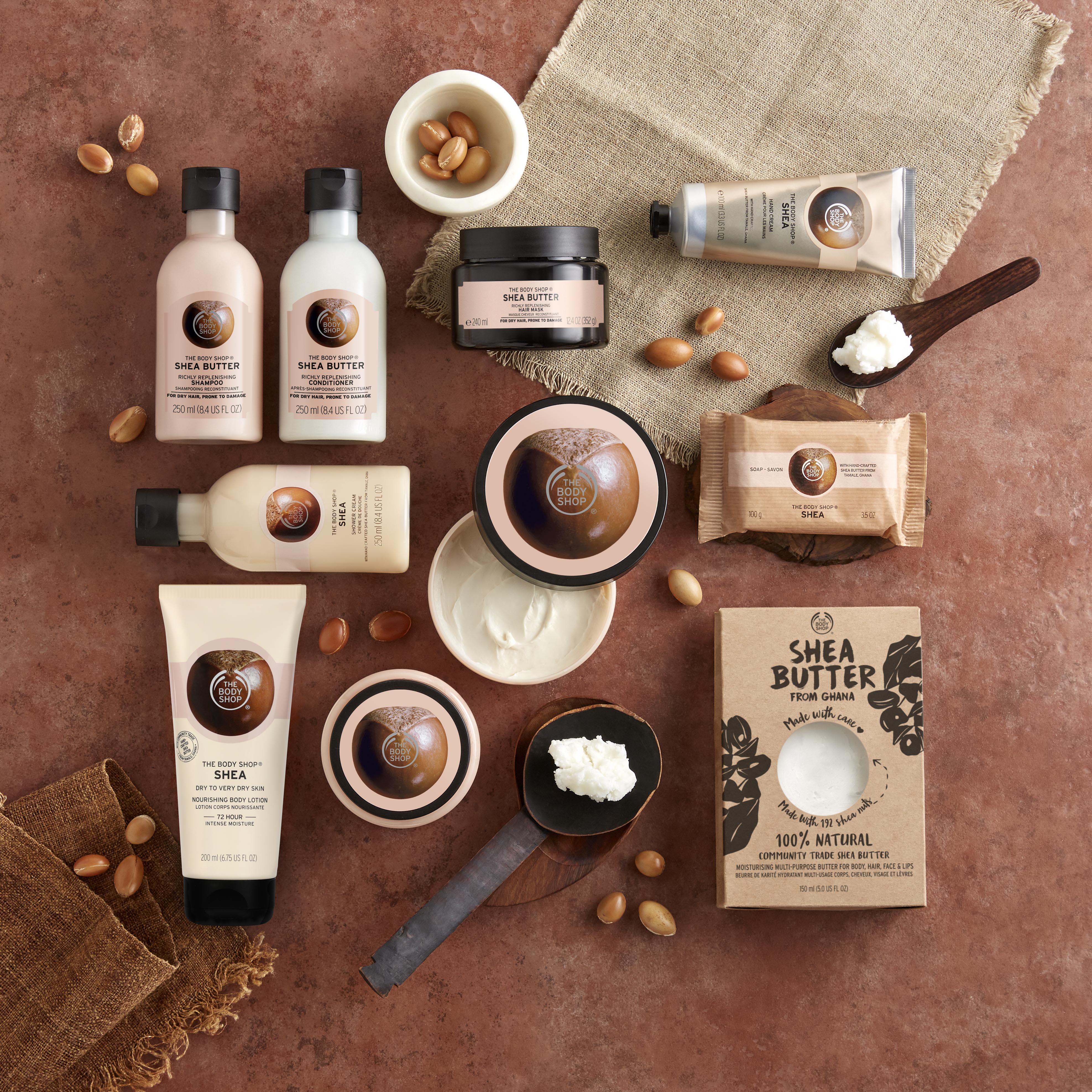 THE BODY SHOP每年由640名的社區婦女以純手工提煉出優質天然的乳油木果油,這些女性從媽媽到女兒,跨越整個世代,透過18項生產製成階段,產出390噸純淨天然的乳油木果油。藉由這樣的合作關係,能讓這些婦女以一己之力改善生活及經濟狀況,同時提升女性在當地的社會地位。