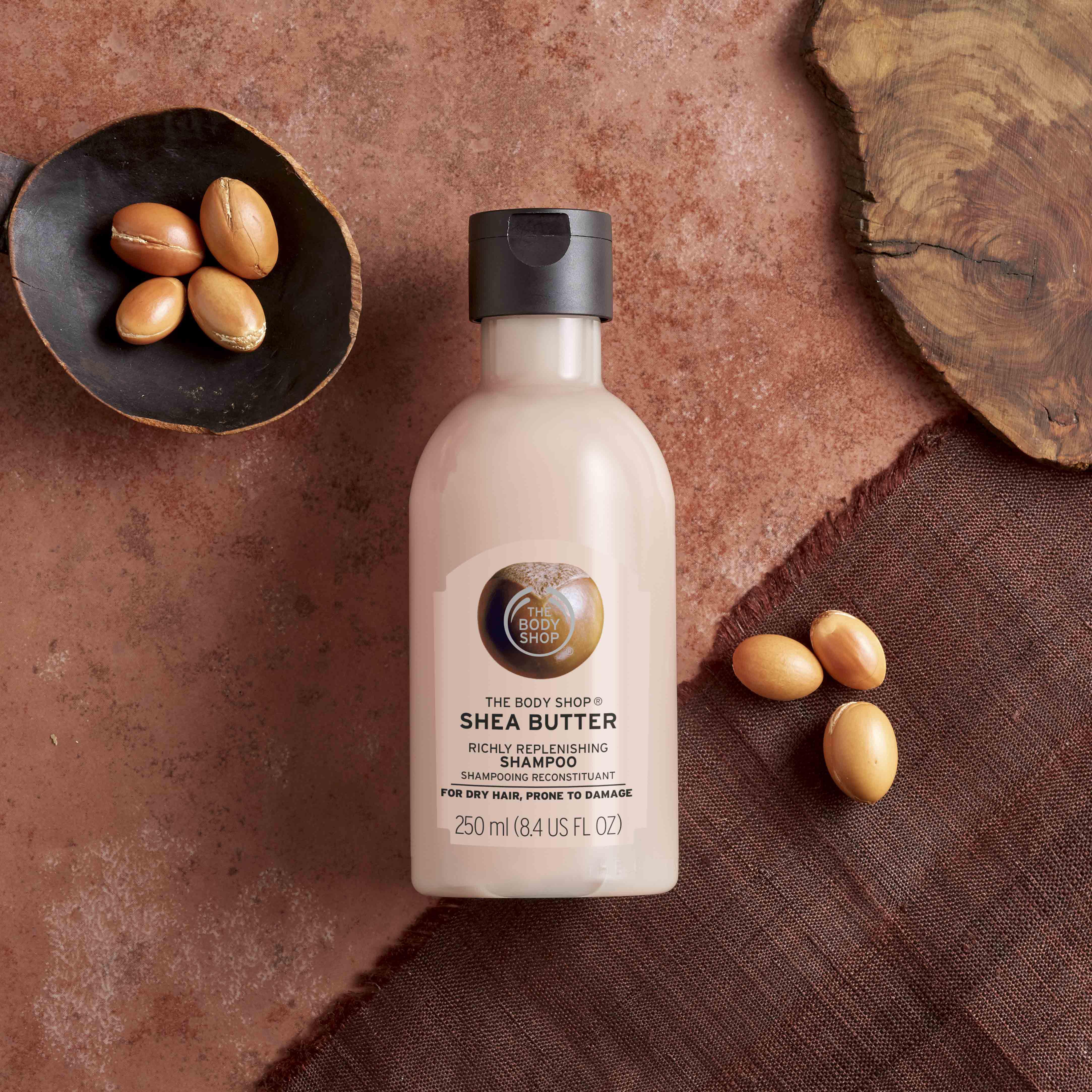 使用乳油木果豐盈洗髮精,徹底洗淨毛囊與髮絲 使秀髮豐盈有彈性。