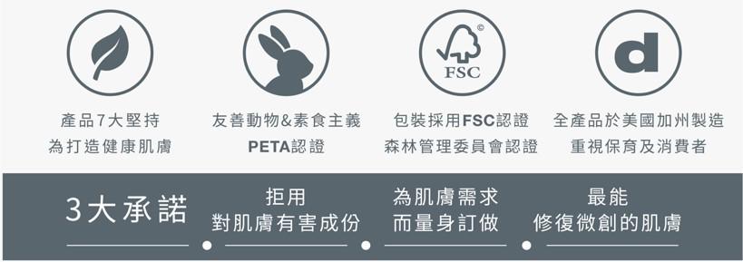 美國專業護膚品牌-德卡dermalogica創立至今30多年始終堅持帶給消費者健康肌膚的初衷,將其心力完全聚焦於產品的專業、品質與護膚功效,採用7大天然成分:植物油、氧化鐵、神經醯胺、金縷梅&茶樹、有機矽、精油&純露、維他命E為商品研發基底,拒用礦物油、人工色素、羊毛脂、工業用酒精、十四酸異丙脂、人工香料與甲醛(防腐劑)等肌膚有害物質,經美國PETA認證為友善動物&素食主義的純淨保養,遵循環保永續概念的包裝設計,持續提供最貼近肌膚需求、並且最能呵護細緻肌膚的真心承諾。