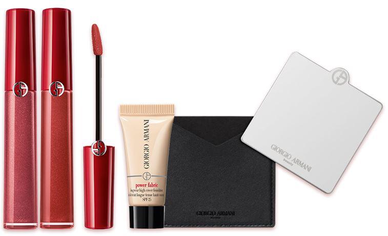 GIORGIO ARMANI 初夏特別準備兩款高訂妝感組,恣意一抹飽和顯色,奶霜質地為雙唇創造水潤感,只要購買唇彩就能獲得持久不脫妝的完美水慕斯絲絨粉底5ml;高規格的黑曜岩保養系列旅行組,入手即能啟程!