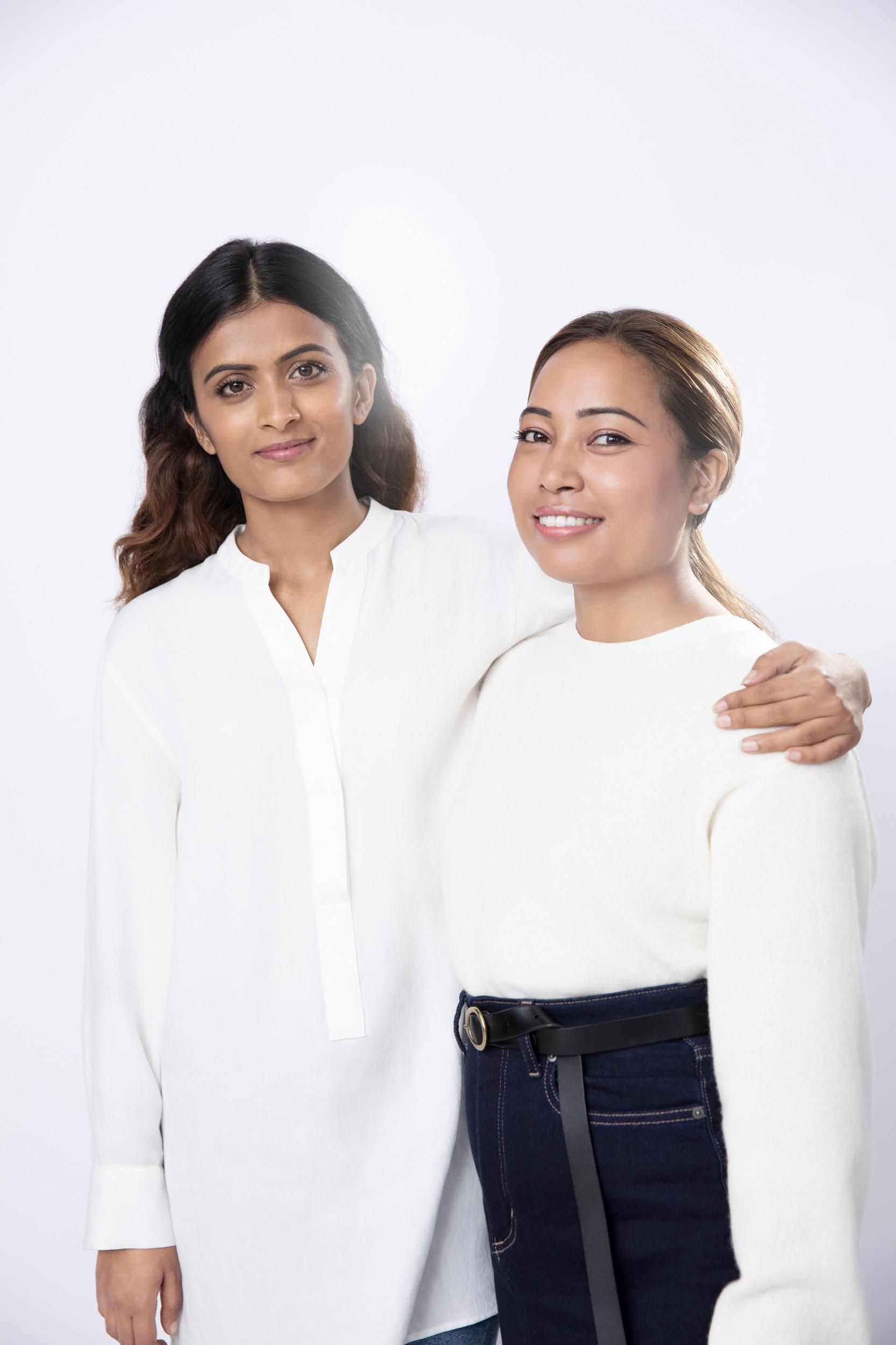 與「2020 光之美力計畫大獎」獲獎者 Binita Shrestha 和 Pratiksha Pandey,以及來自全球的女童教