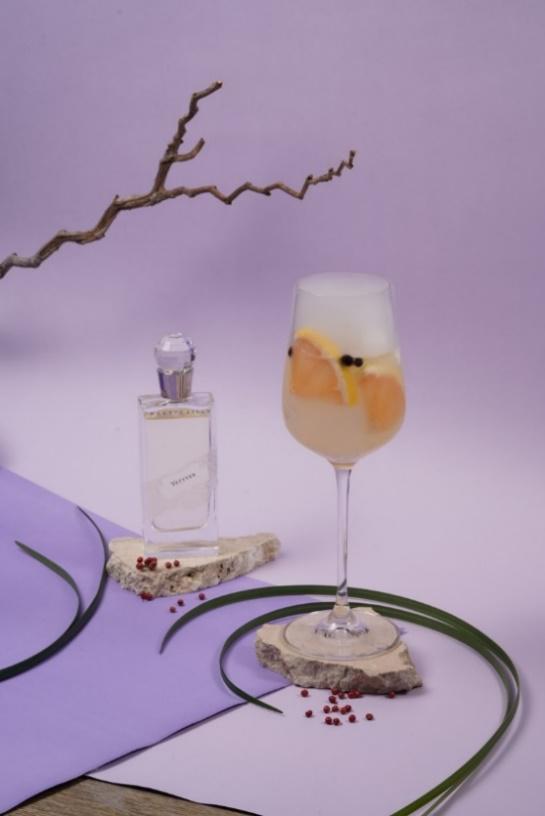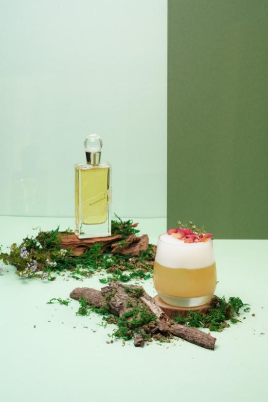 Bruce使用琴酒為基底,利用杜松與荳蔻打造強而有力的底蘊,再用檸檬與葡萄柚勾勒出幹練俐落的口感,完美詮釋香氛中男性的強勢活力與女性的犀利精明。激盪出滿滿自然草本、微帶刺激、充滿木質調香氣的微辛琴調。