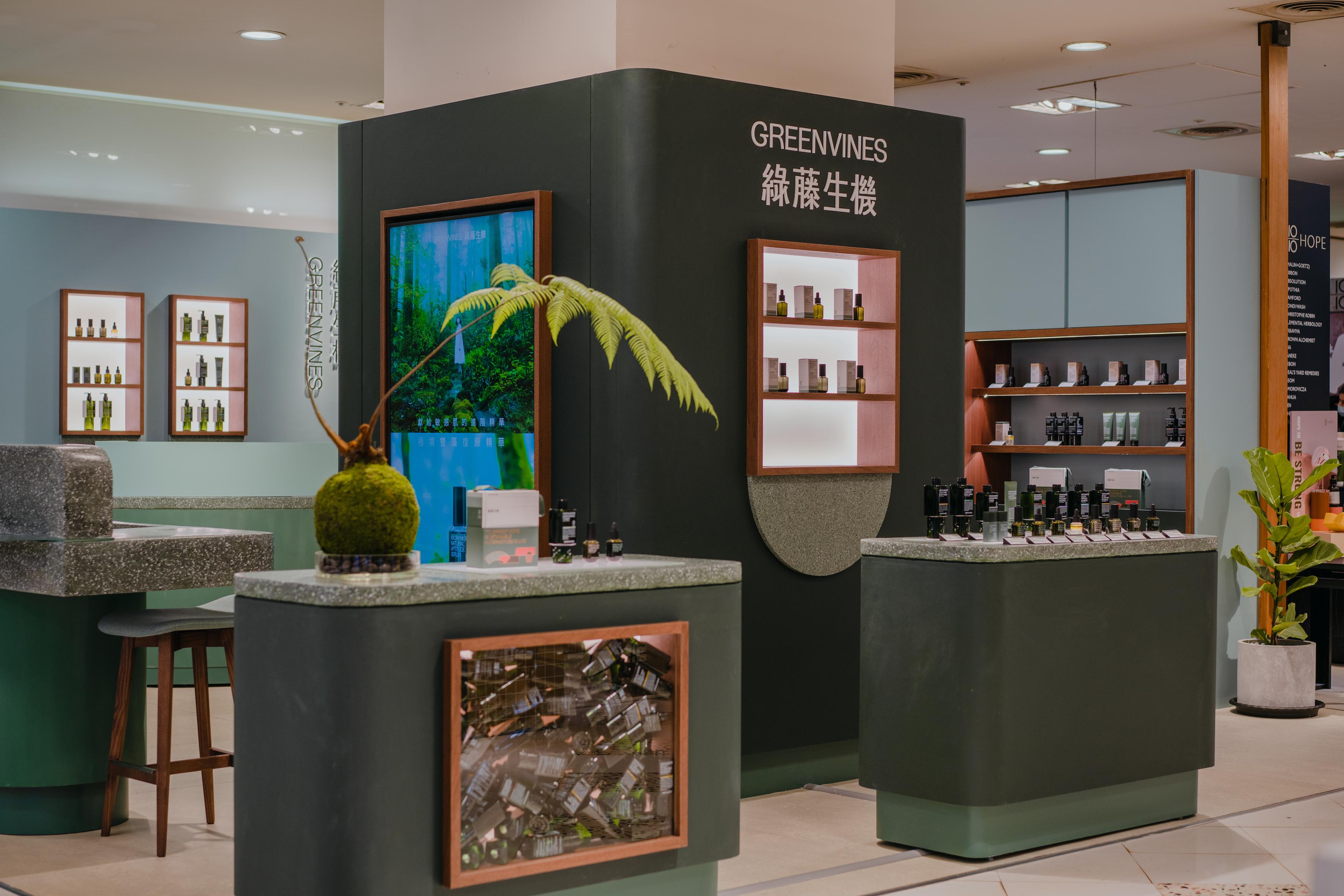 台南,2022 年 3 ⽉ 3 ⽇ — 台灣純淨保養(Clean Beauty)品牌綠藤⽣機於 3/1 進駐新光三越台南新天地,⾸間台南⾨市正式開幕。全新⾨市以府城意象為靈感,將「磨⽯⼦」、「拱窗」、「圓環」等古都元素融入空間設計,結合象徵在地永續精神的「回收蚵殼」以及⽔庫淤泥再⽣「樂⼟」,以全台⾨市最⾼綠建材比例,體現品牌深入減法的純淨保養理念。正式扎根台南之際,綠藤更推出「台南設計限定版.純淨保養禮盒」以及限量「復刻加⼤版頭⽪淨化洗髮精」,邀請消費者⼀同感受純淨保養的美好。